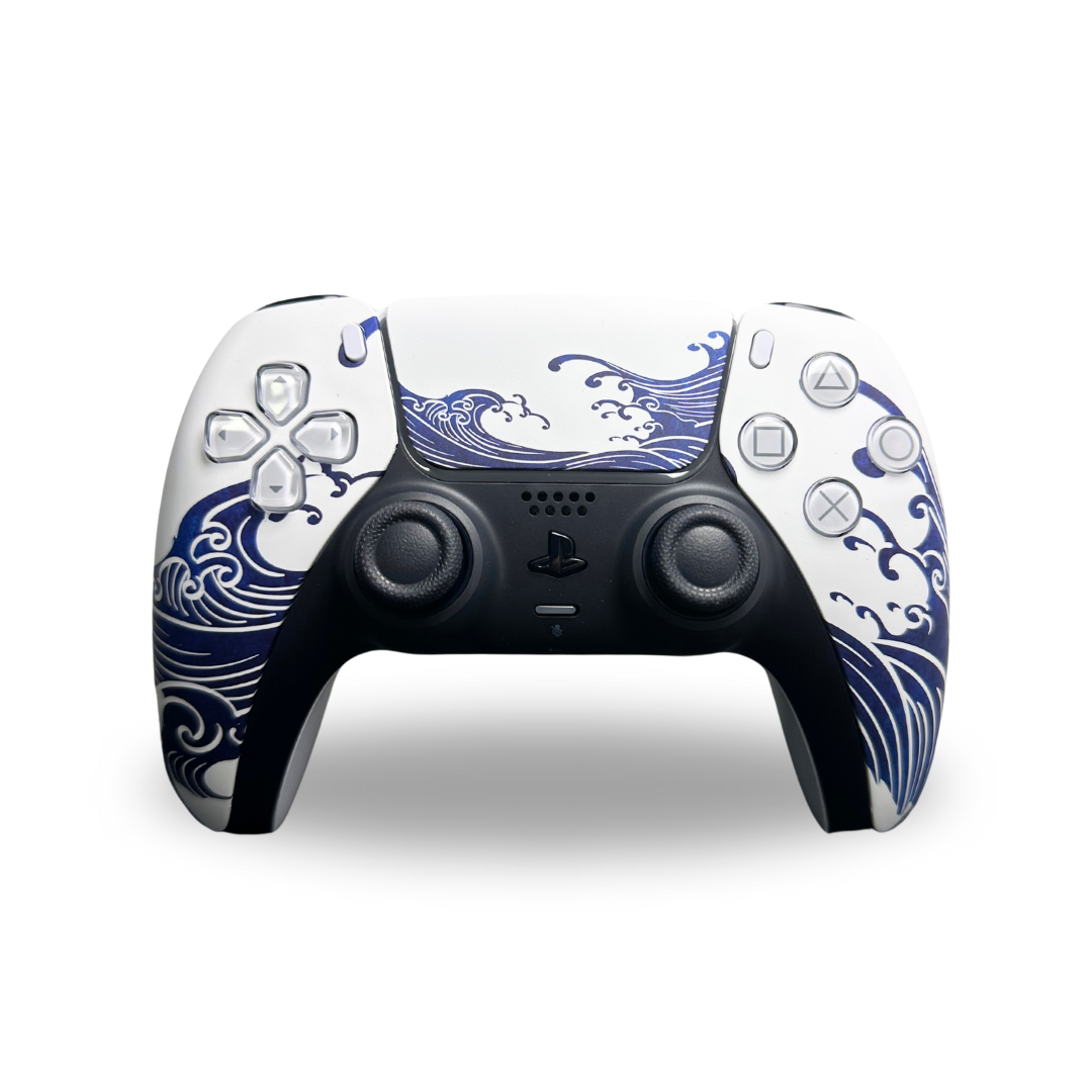 Ride the tide with the Waves-Themed Custom PS5 Controller. Designed with a stunning blue waves pattern, this controller lets you channel the calm and power of the ocean. Choose between classic black buttons or radiant RGB buttons to make it uniquely yours. With integrated RGB lighting, illuminate your gameplay and dive into an immersive gaming experience that's as smooth as the sea.